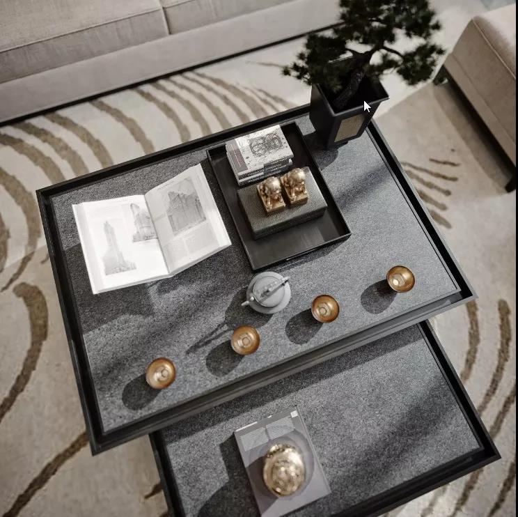 從整體布局可以看出清雅恬淡、沉穩(wěn)大氣的主調(diào),簡潔對稱的格局,動靜分離的區(qū)域,調(diào)融和諧的色彩,在如此格局的空間里,無疑能夠卸下沉重的心理負(fù)擔(dān)。從細(xì)節(jié)高山流水的引入,到山紋大地的色彩,極具東方韻味。有助于人們平息內(nèi)心的悸動、整理心緒。